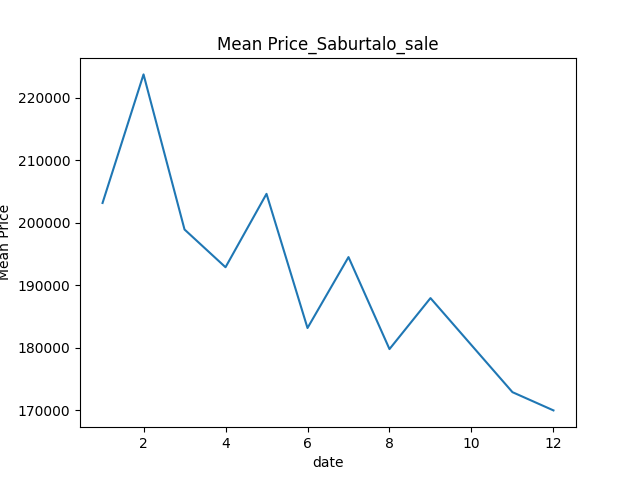 図4.物件の平均価格(米ドル、Saburtalo区)。1は2025年1月のことを指す。