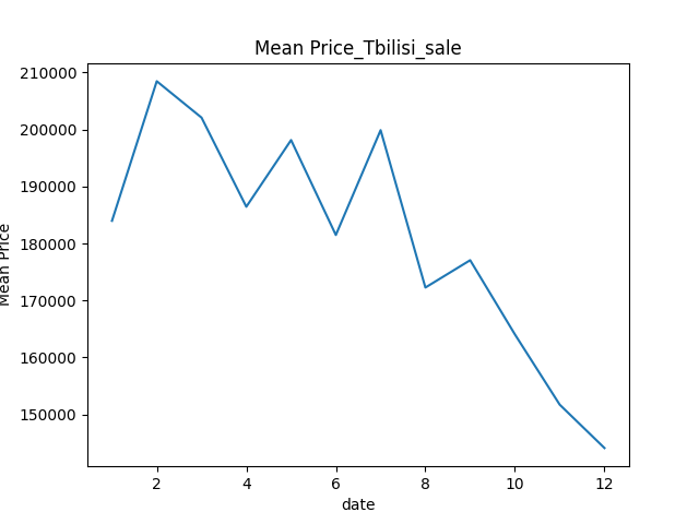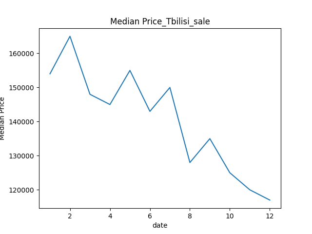 2025年は、トビリシ全体において売買物件価格に一定の下落傾向が見られました。昨年2月頃を境として平均価格は徐々に低下し、その動きは年末まで継続した可能性があります。月次データの推移を見る限り、こうした傾向が示唆されているようにも見受けられます。